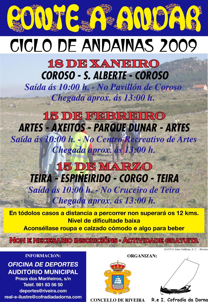 Como vedes mando adxunto o cartel correspondente ó CICLO DE ANDAINAS 2009 do programa PONTE A ANDAR organizado pola Cofradía da Dorna e o Concello de Ribeira.