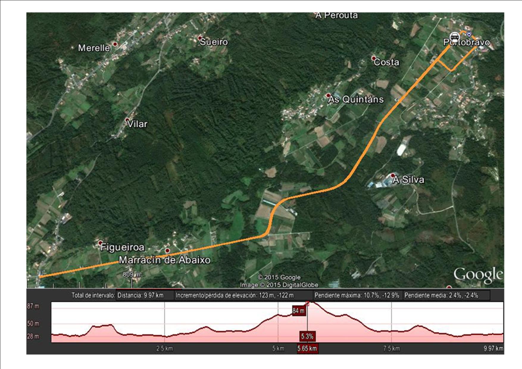 O percorrido, non é que sexa moi duro, pero ten a sua miga, xa que antes de chegar ao primeiro Km. temos unha subidiña un pouco dura. e despois llaneamos e baixamos para volver a pasar pola saida, ata ahí fun controlando un pouco, e a partir do 1,5Km. aumentei o ritmo, xa que ata o 4+ ou menos e bastante rápida, despois temos unha subida longa e algo dura, na que me atasco un pouco, pero dame a vida un descansiño previo a encarar a parte máis dura da subida, cando estamos cerca do Km6, damos volta e se tes forza hai que darlle a tope.