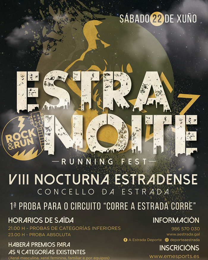 O Concello da Estrada, en colaboración co Club Deportivo San Paio, Atletismo A Estrada e CAI A Estrada, organizan o sábado día 22 de Xuño a VIII Carreira Nocturna Concello da Estrada; a proba será a primeira carreira puntuable para o VII Circuito “Corre A Estrada Corre” en todas as categorías.