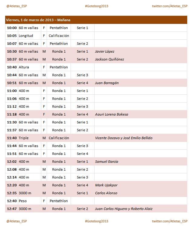 CAMPEONATO DE EUROPA EN PISTA CUBIERTA (1 al 3 de marzo en Goteborg, Suecia)