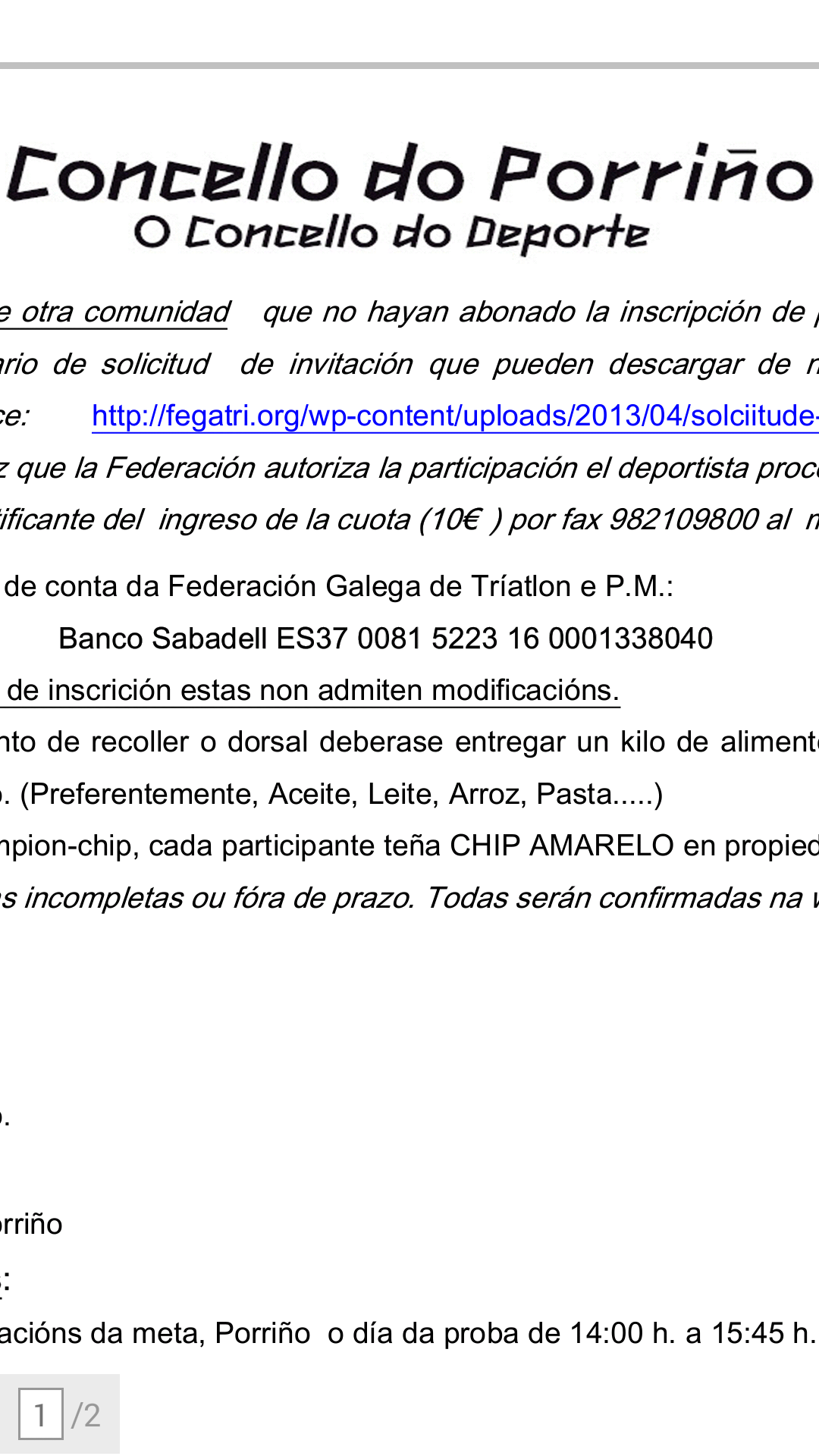 | Alguien sabe donde hacer el ingreso bancario de la inscripcion, en la web de FEGATRI no aparece nada ni en la web del concello. Es valido el estar federado en ciclismo? |