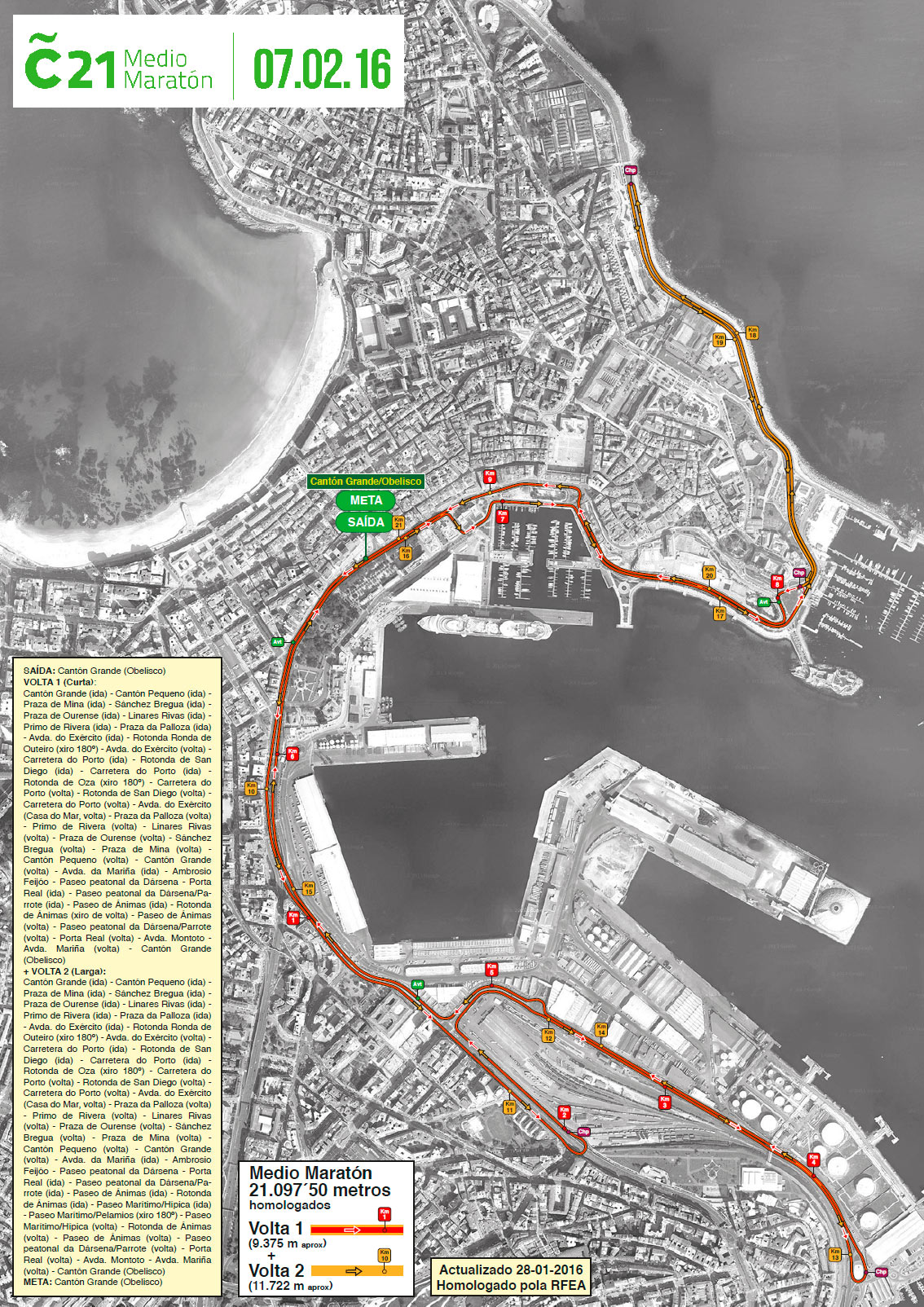 Hoxe remata o prazo para inscribirse a prezo reducido na Media Maratón Coruña 21, a primeira media galega deste 2016. A proba, sobre unha distancia homologada de 21.097 metros, disputarase o próximo domingo de Carnaval, 7 de febreiro, con saída ás 10 da mañá e puntuable para o Circuíto con coeficiente 2,5.